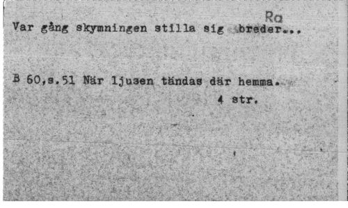 //// Ra //// Var gång slcymningen stilla sig breder».. //// B 60,s.51 När ljusen tändas där hemma. //// 4 str. //// i ' 1 s i. , ^ - , ' //// \ :.-. •; -J •" ' . ".v-,, -v •• •• - . '._'•' . , rré"- ; ; • " . . - ¦.-,> ' • --"-v.-.;. '. //// i"*'"*' ^ . '' " ¦ r"-. r . ¦ • v/ *, *'¦ -^ *** //// -• i t \ ' * //// - ; . ¦ •.f '. ; . ' //// « , if ys ^ t : : .. ,, \ ii c „ t- ••*• ¦¦ i - • ' - , ' . • - . • __ ., ' * ////