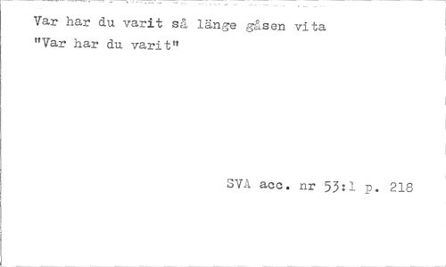 //// Tar har du varit så länge gåsen vita "Var har du varit" //// SVå acc. nr 53:1 p. 218 ////