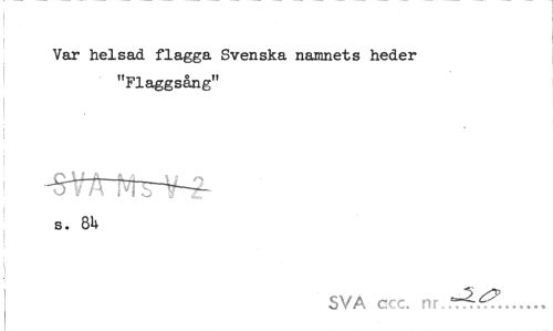 //// Var helsad flagga Svenska namnets heder "Flaggsång" //// I j //// s. 8U //// SVA ccc. nr... ////