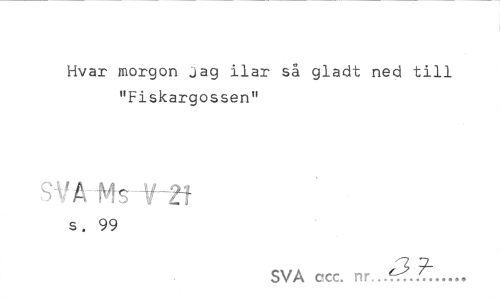 //// Hvar morgon jag ilar så gladt ned till "Fiskargossen" //// SVAMs^tf //// s. 99 //// SVA ccc. nr ... ////