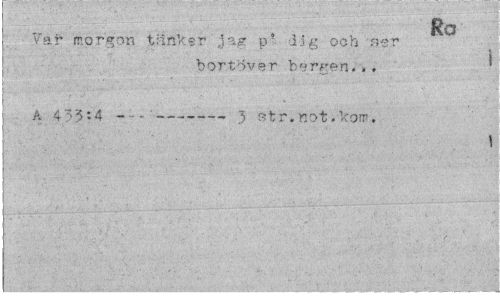//// Var morgon tänker jag p djg och ser //// bortover bergen.*. //// a 457:4 ---"5 str. not .kom. //// j 1 ////