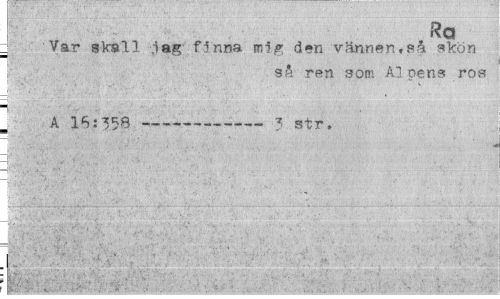 //// Ro //// Var skall .iag finna mig dan vännen.så skon //// så ren som Alpens ros //// A 16:758 —--- ? str. //// . - . • - '*' '.v .« ¦ t 0 V ////