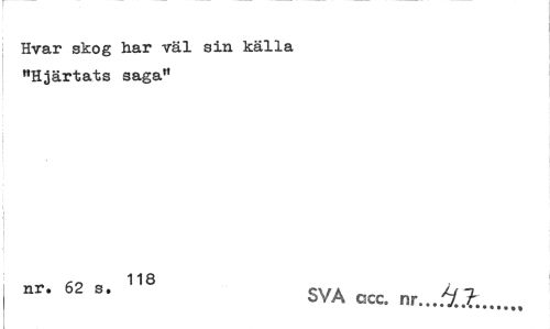 //// Hvar skog har väl sin källa "Hjärtats saga" //// nr» 62 s. c\/a jLi -i //// SVA acc. nr... ////