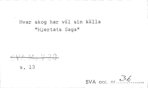 //// Hvar skog har väl sin källa "Hjertats Saga" //// ' yr y 20 s. 13 //// SVA ccc, nr. ... ////