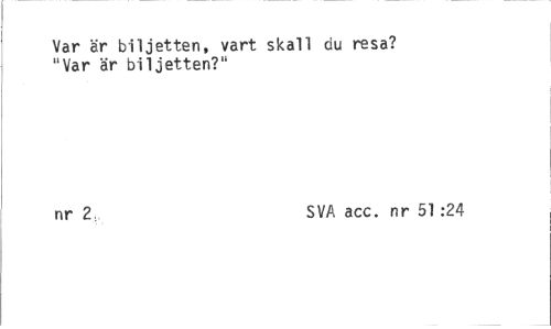//// Var är biljetten, vart skall du resa? "Var är biljetten?" //// nr 2 SVA acc. nr 51:24 ////