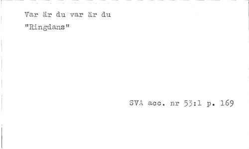 //// Var är du var är du "Ringdans" //// SYA acc. nr 53:1 p. 169 ////