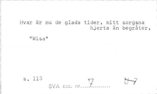 //// Hvar är nu de glada tider, mitt sorgsna //// hjerta än begråter, //// "Wisa" //// s- 113 7 thy //// SVA ccc. nr...t... ////