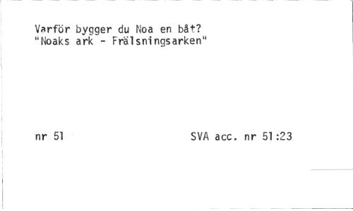 //// Varför bygger du Noa en båt? //// "Noaks ark - Frälsningsarken" //// nr 51 SVA acc. nr 51:23 ////