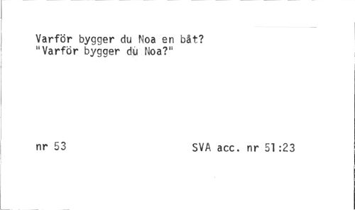 //// Varför bygger du Noa en båt? //// "Varför bygger du Noa?" //// nr 53 SVA acc. nr 51:23 ////