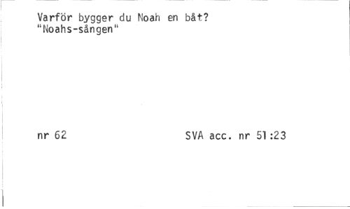 //// Varför bygger du Noah en båt? //// "Noahs-sången" //// nr 62 SVA acc. nr 51 :23 ////