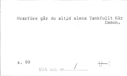 //// Hvarföre går du altjd alena Tankfullt Kär //// Damon, //// s 99 jj_' //// s- / //// SVÅ ccc. nr...(... ////