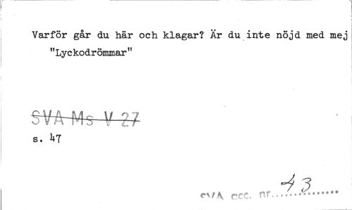 //// Varför går du här och klagar? Är du inte nöjd med mej "Lyckodrömmar" //// V 27- //// s. ut //// r\/\ rcc, ... ////