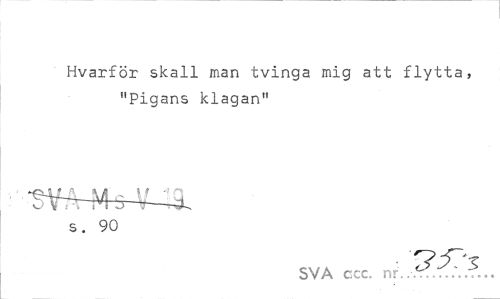 //// Hvarför skall man tvinga mig att flytta, "Pigans klagan" //// s. 90 //// SVA ccc. nr. ////