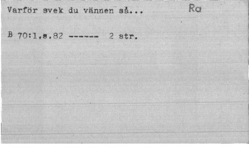 //// Ra //// Varför svek du vännen så... B 70:l,s.82--- 2 str. ////