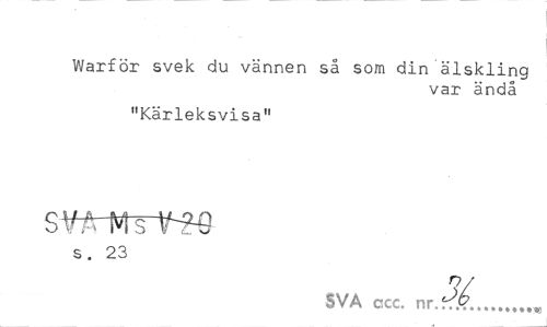 //// Warför svek du vännen så som din älskling //// var ändå //// "Kärleksvisa" //// s. 23 //// SVA ccc. nr //// 3é ////