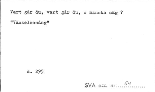 //// Vart går du, vart går du, o mänska säg ? "Väckelsesång" //// s. 295 //// SVA acc. nr— f. ... ////
