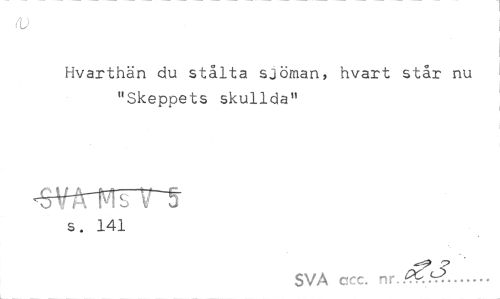 //// Hvarthän du stålta sjöman, hvart står nu "Skeppets skullda" //// s. 141 //// SVA acc. nr. ... ////