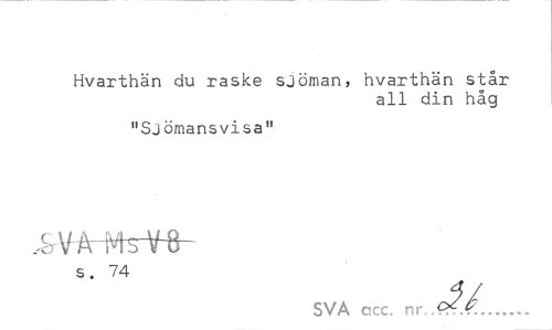 //// Hvarthän du raske sjöman, hvarthän står //// all din håg //// "Sjömansvisa11 //// s. 74 //// SVA acc. nr //// o?/ ////