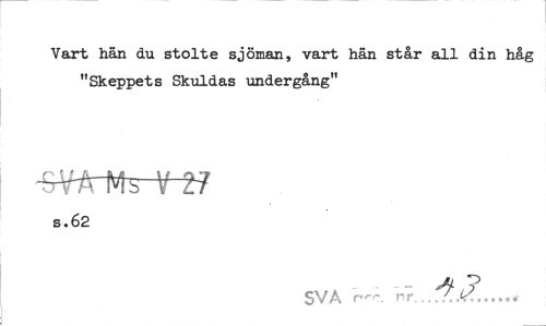 //// Vart hän du stolte sjöman, vart hän står all din håg "Skeppets Skuldas undergång" //// s.62 //// A p //// SVA r»"\ rr , /^V,... ////