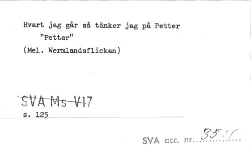 //// Hvart jag går så tänker jag på Petter //// "Petter" (Mel. Wermlandsflickan) //// •sva-ms-W //// s. 125 //// SVA ccc. nr...' ////
