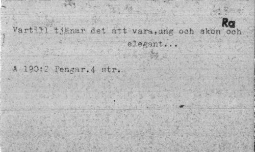 //// ' ' .i ' . ,;. //// .v* - -y-' //// ' v' ...-- - - - . ; — ~ - . i.i.»r;ä" - *•• //// Ka //// vartill tiänar det ätt vara,ung och skön oeh //// elegant... //// A 190;2 Pengar.4 str. //// <r ////