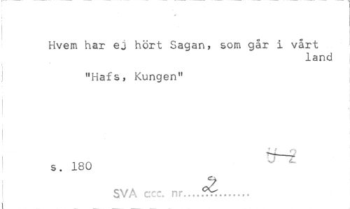 //// Hvem har ej hört Sagan, som går i vårt //// land //// "Hafs, Kungen" //// f ^ //// '! s. 180 //// c? //// SVA ccc. nr..,. Pv:... //// i ////