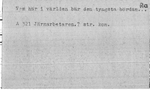 //// Rq //// V-m här i världen bär den tyngsta bördan.4. . A 321 Järnarbetaren.7 str. kora. ////