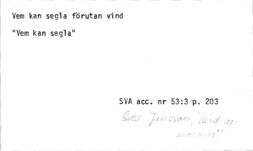 //// Vem kan segla förutan vind "Vem kan segla" //// SVA acc. nr 53:3 d. 203 //// sfåj Jacfz^,^ '/kW //// t* / ////