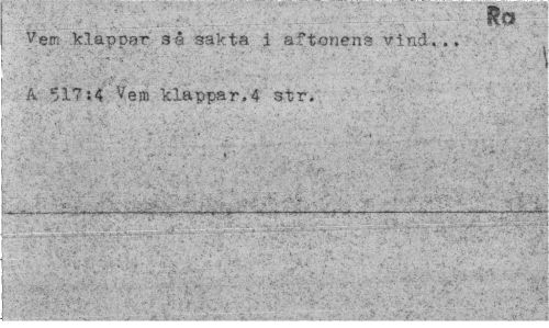 //// KQ //// Vem klappar så sakta i aftonens vind.., A 517:4 Vem klappar.4 str. //// '¦¦ - V-:*.--'¦ i ' .-i-* ' ' y ¦: ' //// : ¦ v - * ; , - ' \ i-, > " , _ 1 -> ^ ¦ y //// f. 4- r: >/i : -V \ •»•«---— ¦ —- » ---—--„,. ¦¦--—--- //// i f » - • - - - w " ' //// ¦ '• ¦<..'¦ ¦'--'-"'¦¦ ¦¦-"-¦¦1-'.' ' >: " A ' .."¦ ... 'v*; //// . V , ' . -V i» ,*- , , . , ' //// 4 . • • • • ; - //// -v.,;. as Wsaxtik i. . MHBMBi sfflM^äSfljil i '•'K : ////