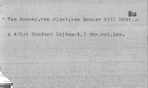 //// Ba //// * Vem kommer,vem rider,vem kommer till häst. «•. A 405:6 Staders löjtnant.3 3tr.not.kom. ////