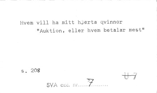 //// Hvem vill ha mitt hjerta qvinnor //// "Auktion, eller hvem betalar mest" //// s. 208 //// -M //// SVA cec. nr.../... ////