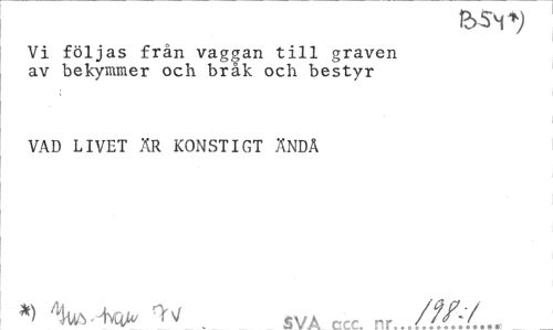 //// b sm *; //// Vi följas från vaggan till graven av bekymmer och bråk och bestyr //// VAD LIVET ÄR KONSTIGT ÄNDÅ //// <5V A nr ////