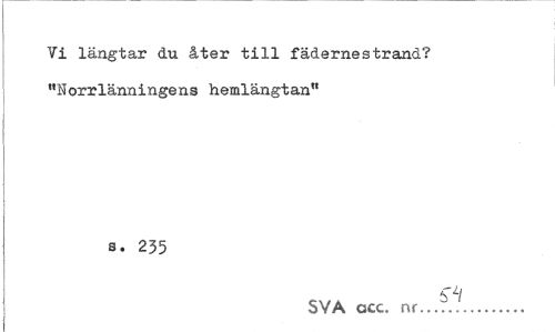 //// Vi längtar du åter till fädernestrand? "Norrlänningens hemlängtan" //// s. 235 //// SVA acc, nr...:... ////