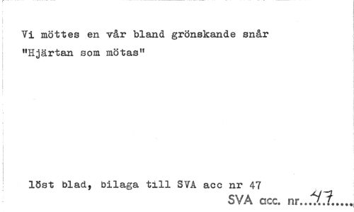 //// Vi möttes en vår bland grönskande snår "Hjärtan som mötas" //// löst blad, bilaga till SVA acc nr 47 //// SVA acc. nr...^ ////