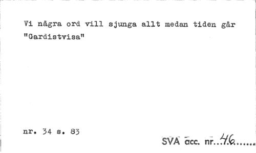 //// Vi några ord vill sjunga allt medan tiden går "G-ardistvisa" //// nr. 34 s. 83 -Ur //// SVA acc. nr..77.v,...«, ////