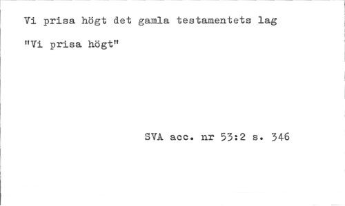 //// Vi prisa högt det gamla testamentets lag "Vi prisa högt" //// SVA acc. nr 53:2 s. 346 ////