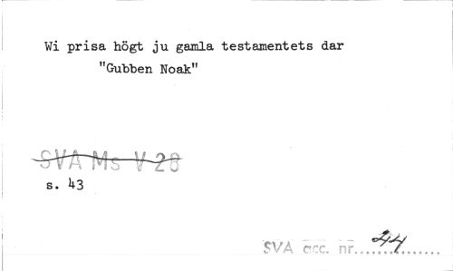 //// Wi prisa högt ju gamla testamentets dar "Gubben Noak" //// s. k3 //// SVA rzc. nr... T^jf... ////
