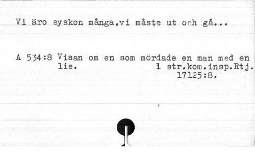 //// Vi äro syskon många,vi måste ut och gå... //// A 534:8 Visan om en som mördade en man med en lie. 1 str.kom.insp.Rtj. //// 17125:8. //// t ////