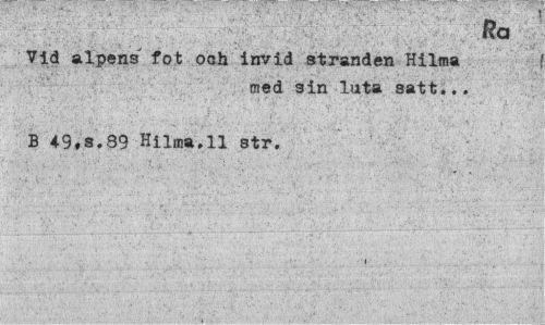 //// gglg Ra //// Vid alpens fot och invid stranden Hilma //// med sin luta satt... //// B 49,s,89 Hilma.11 str. //// i . ////