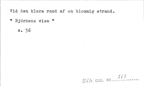 //// Vid den klara rand af en "blommig strand. 11 Björkens visa " s. 56 //// ill //// SVA ccc. nr... ////
