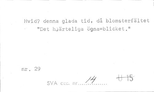 //// Hvid? denna glada tid, då blomsterfältet "Det hjärteliga ögna=blicket." //// nr. 29 //// -tHSr //// SVA ccc. nr. .frrv^rv,*.» ////