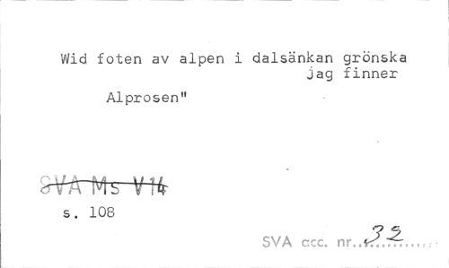 //// Wid foten av alpen i dalsänkan grönska //// jag finner //// Alprosen" s. 108 //// SVA ccc. ////