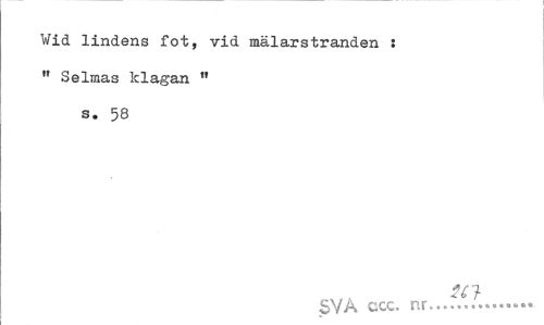 //// Wid lindens fot, vid mälarstranden : " Selmas klagan " s. 58 //// 1C'} //// SVA ccc. nr... ////