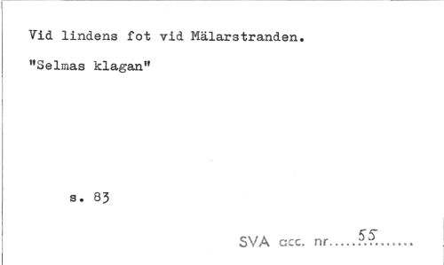 //// Vid lindens fot vid Mälarstranden. "Selmas klagan" //// s. 83 //// tMké^tytffa) SVA ccc. nr.- ////