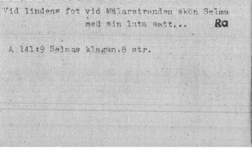 //// Vid linden* fot vid ml arstranden skön Selma //// med sin Inta satt... RO //// A. 14119 Selmas klagan.8 str. ////