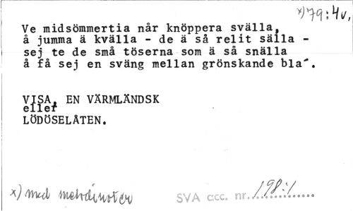 //// VWilv, //// Ve midsömmertia når knöppera svälla, å jumma ä kvälla - de ä så relit sälla -sej te de små töserna som ä så snälla å få sej en sväng mellan grönskande bla'. //// VJSAj EN VÄRMLÄNDSK LÖDÖSELÅTEN. //// tMké^tytffa) SVA ccc. nr.- ////