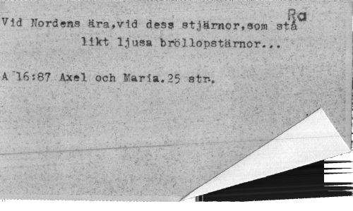 //// Ra //// Vid Nordens ärafvid dess stjärnor,som stå likt ljusa bröllopstärnor... //// A "16:87 Axel och Maria. 25 str-. //// '* r ^ //// ' ' v ; ¦ //// .-.V-.'." ¦ //// P^ri ////