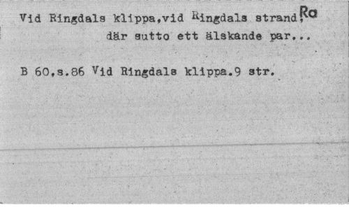 //// Vid Ringdals klippa,vid Ringdals strand där sutto ett älskande par... //// B 60,s.86 Vid Ringdals klippa.9 str. ////
