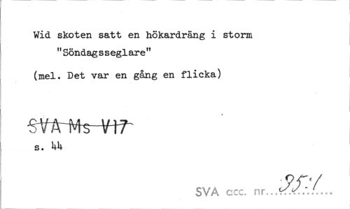 //// Wid skoten satt en hökardräng i storm "Söndagsseglare" //// (mel. Det var en gång en flicka) s. hk //// SVA ccc. nr..*<f£... ////