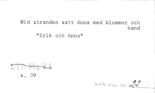 //// Wid stranden satt Anna med blommor och //// band //// "Erik och Anna" //// tSliii il S w 4 s. 39 //// SVA acc. nr..< ////